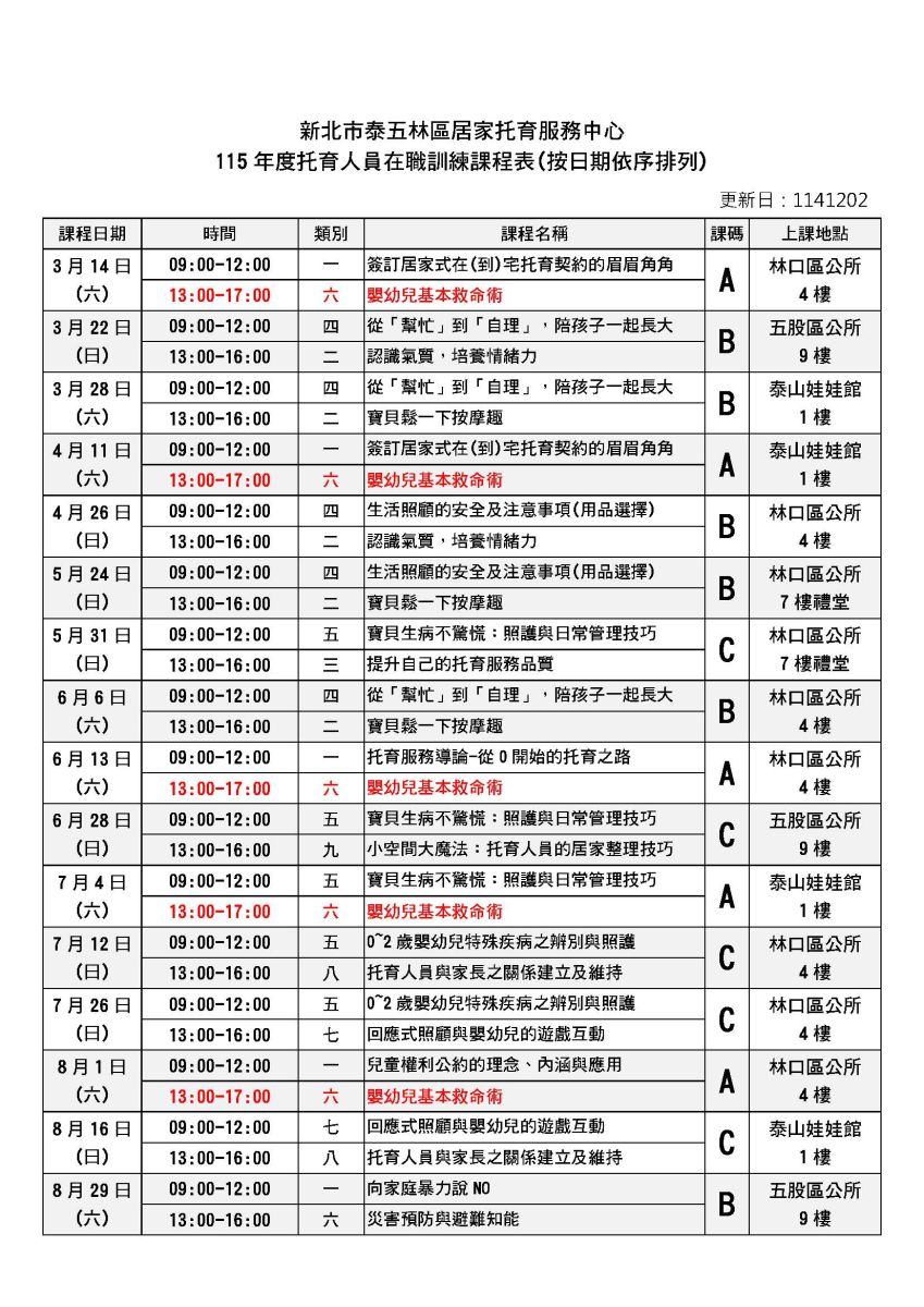 最新課表